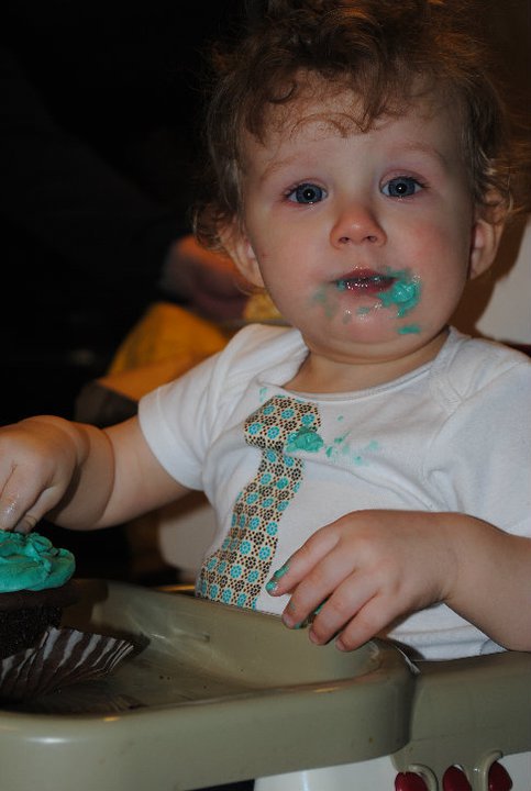 Here is the birthday boy getting his first taste at chocolaty goodness